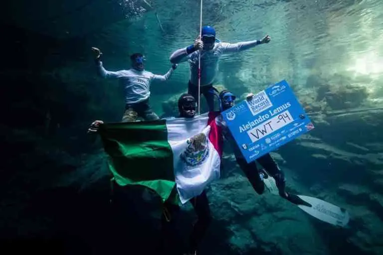 Alejandro Lemus en presencia de la Confederación Mundial de Actividades Subacuáticas ha superado tres récords mundiales en inmersión de agua dulce con monoaleta, bialeta y sin aleta; es el primer mexicano que alcanza este logro y definitivamente esto solo es una parte de toda la trayectoria deportiva que ha recorrido.